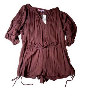 Urban Outfitters Brown Romper S V-Neck Button-Front Lace Sleeve Tie Waist 100% V