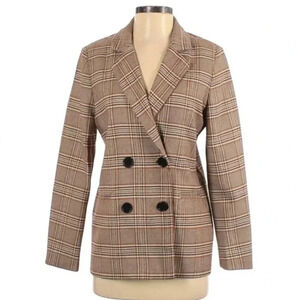 Urban Outfitters Brown Tartan Plaid Double Breasted Blazer Jacket Size Small S