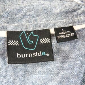 Urban Outfitters Burnside Blue & White Striped Button Down Shirt. Blue & White Chambray Short Sleeve Casual Button Down. Preppy Retro 90s Vintage Style Casual Classiccore Retro Shirt