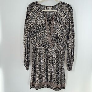 NWT Urban Outfitters COPE Mini Long Sleeve Dress w/Black/Beige/ White Abstract Print. Bodice wraps at the top. Size L