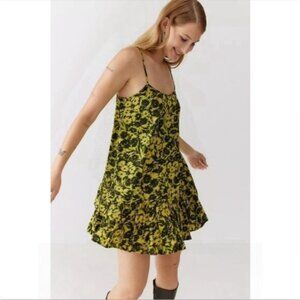 Urban Outfitters | Camille Mini Frock Dress Yellow Green Digitized Floral Medium