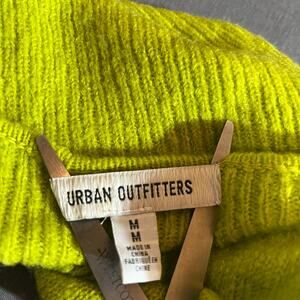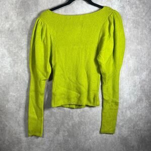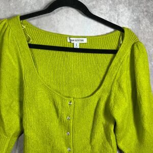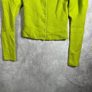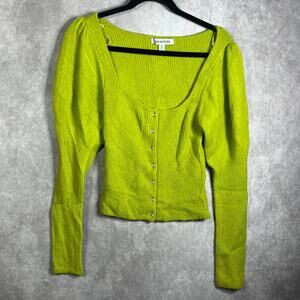 Urban Outfitters Cardigan Sweater Womens Medium Green Knit Puff Sleeve Cropped
