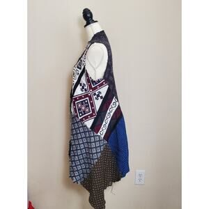 Cozy meets statement style with this ultra-soft knit vest from the Urban Outfitters Renewal Collection. Featuring a patchwork Fair Isle pattern and raw handkerchief hem, it’s perfect for layering and adding a bold, boho touch to your look. Perfect for layering over basics or styling with your favorite denim for a cozy, standout outfit.