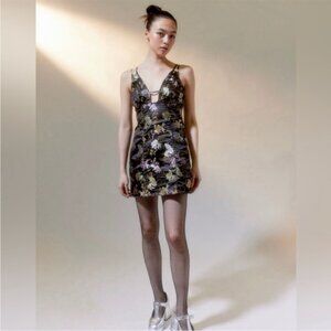 Urban Outfitters | Cassie Satin Strappy Back Black Mini Dress Koi Small New