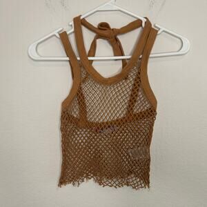 Urban Outfitters Caught Up Sheer Mesh Tank Top in Tan. Size Small