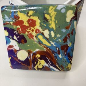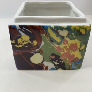 Urban Outfitters Ceramic Box Paint Pour 4” Cube Small Decorative Storage