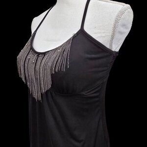Urban Outfitters ✦ Chain Fringe Halter Top ✦ Black w/ Smocked Back & Tie Neck S