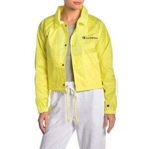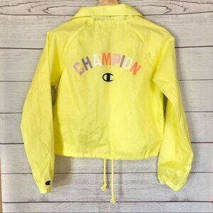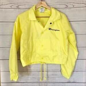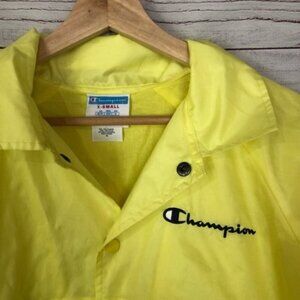 Urban Outfitters Champion Button Snap Colorful Logo Back Yellow Windbreaker XS
