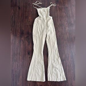 Urban Outfitters Chandler Linen Strappy-Back Jumpsuit Sz Small Cream Retro 70s
