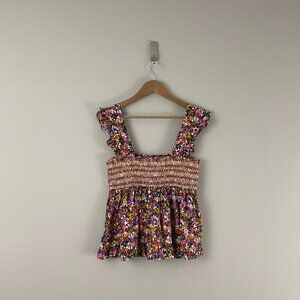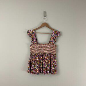 Urban Outfitters Charlotte Smocked Floral Babydoll Top Size Large