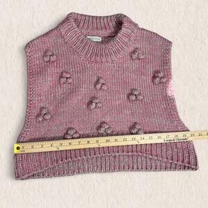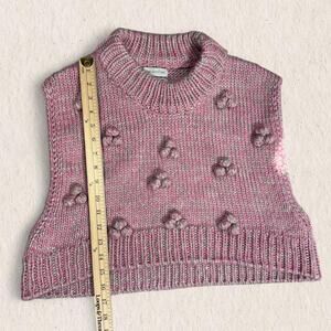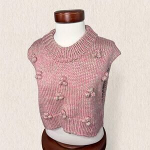 Urban Outfitters chunky knit cropped sweater top in soft pink marled yarn with 3D bobble knit flowers. Sleeveless pullover style with ribbed crew neckline and hem.