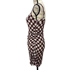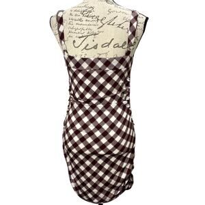Urban Outfitters Clair’s Brown Checkered Ruched Mini Dress Sz Medium Square-neck