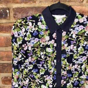 Urban Outfitters Coincidence & Chance Black Floral Long Sleeve Button Down Shirt Women's Size XS