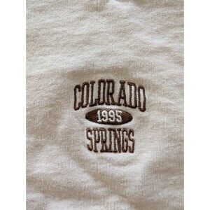 The Urban Outfitters Colorado Springs Oversized Crewneck in size Large is a stylish and comfortable sweatshirt perfect for activewear. Made from soft cotton material, this cream-colored sweatshirt features embroidered accents and a pullover closure. With a crew neck and long sleeves, this oversized sweatshirt is ideal for the winter and spring seasons. The girly design and Pinterest aesthetic make it a fashionable choice for women looking for a trendy yet cozy addition to their wardrobe.