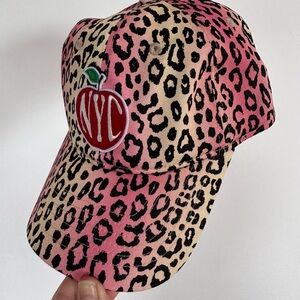 Stylish pink leopard print cap. Features a bold NYC patch. Perfect for adding a fun touch to any outfit.
