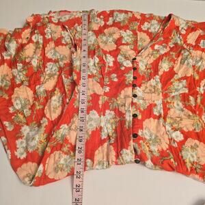 Urban Outfitters Floral Babydoll Midi Dress | Coral | V-Neck, Cap Sleeve, Button Front | Size XS TP