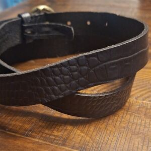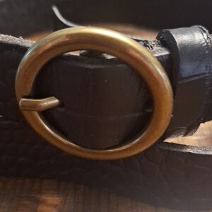 Stylish black leather belt from Urban Outfitters. Features a textured design and a gold circular buckle. Perfect for adding a chic touch to any outfit. Width is 1 1/8". Size L length is 38". In like-new condition.
