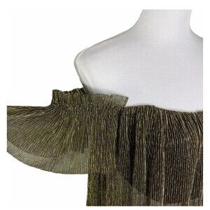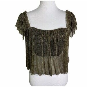 Urban Outfitters Gold Metallic Off The Shoulder Crop Top Womens Sz S