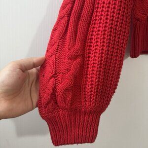 Urban Outfitters Cropped Cable Knit Sweater Women Sz XS V-neck Red Button Front