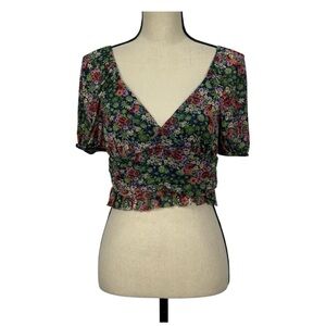 Urban Outfitters Cropped Floral Mesh Sweetheart top size Large women’s