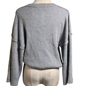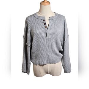 Urban Outfitters Cropped Gray Rib Knit Y2K Henley Style Bell Sleeve Sweater Top