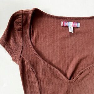 Urban Outfitters Cropped Sweatheart Neck Ribbed Top in Brown