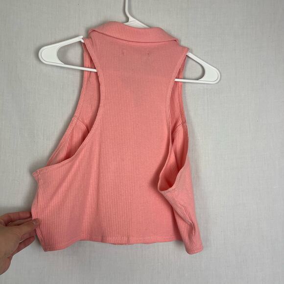 Urban Outfitters Cropped Y2K Button Down Bubblegum Pink Collared Tank Top Large
