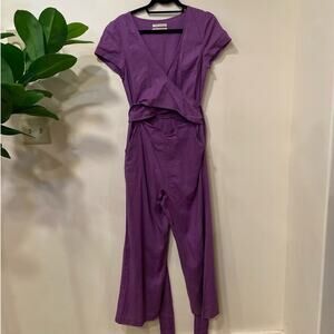 Urban Outfitters Cutout Linen high Waist Wide Leg Wrap Cropped Jumpsuit Purple M
