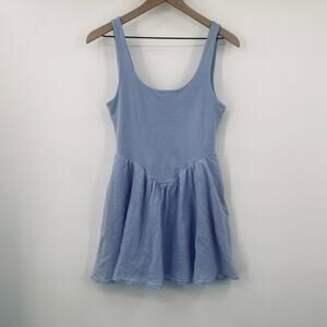 Keywords: scoopneck flattering trendy chic classic balletcore ballet ballerina femme feminine girly pastel sky blue periwinkle tank dress flared bubble puff skirt vacation travel resort cruise summer spring athletic athleisure casual dress flirty skater dress UO sporty flattering floaty lightweight jersey knit knitted low back comfy comfortable hot weather festival concert