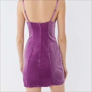 Velvet bodycon. mini dress. Adjustable spaghetti straps. Wire at chest. Has a lingerie look to it. Pink/purple color. Polyester/spandex. Great condition.