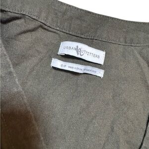 🔑 Keywords: Urban Outfitters top, linen crop blouse, olive green wrap top, boho tie front shirt, minimalist summer blouse, deep v-neck top