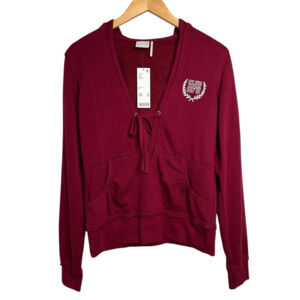 Urban Outfitters Deep-V Ruffle Hem Hoodie Sweatshirt - Size M - NWT!