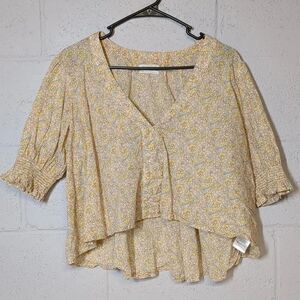 Urban Outfitters Ditsy Floral Cottage Core Cropped Bubble Sleeve Cotton Blouse S
