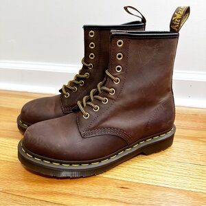 NWOB Urban Outfitters Dr. Martens 1460 11822 Crazy Horse Leather Boot- A new leather for an old classic – this iconic 8-eye 1460 boot by Dr. Martens is made with Crazy Horse, a solid oil-finished leather with a worn, distressed look. Includes all the classic Doc DNA like grooved sides, a heel loop and yellow welt stitching. Built on the iconic Dr. Martens air-cushioned sole with good abrasion and slip resistance.