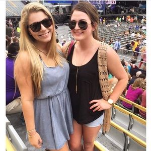 Worn once (see picture), blue jean color, material is on the thin side, bow on side can be tightened or loosened!!