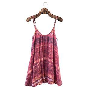 Urban Outfitters Dress Kimchi Blue Swing Loose Lace Up Side Patterned Pink Mini