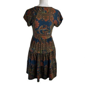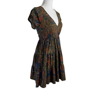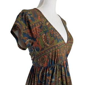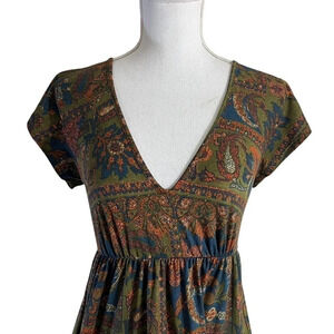 Urban Outfitters Dress Size XS Boho Earth Tones V Neck Short Sleeve Green Orange