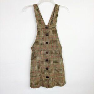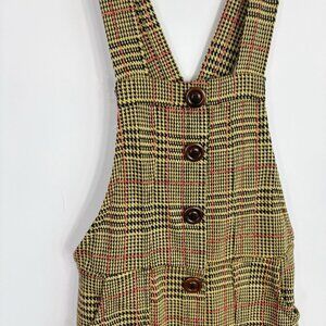 Urban Outfitters Dress Small Joey Yellow Houndstooth Plaid Mini Pinafore Overall Shirtall
