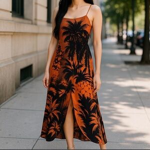 Urban Outfitters Dress Tropical Black and Orange Womens XSmall