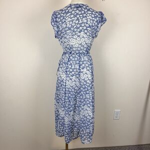 Urban Outfitters Dress Womens Medium Jessica Cap Sleeve Floral Wrap Midi Blue