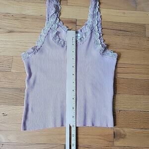 Urban Outfitters Dusty Rose Lace Trim Rib Knit Cropped Tank Top Coquette Retro