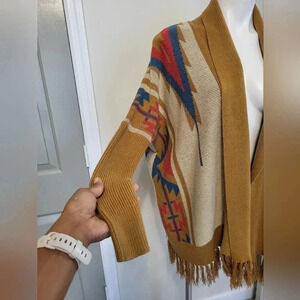 Urban Outfitters Ecote Aztec Open Front Fringe Details Sweater Cardigan(S)