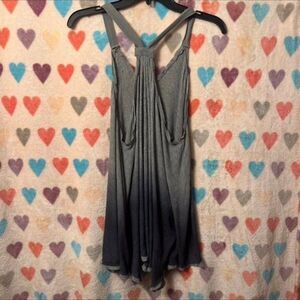 Gray to navy blue ombré pattern. Racerback. V neck. Flowy