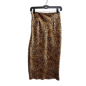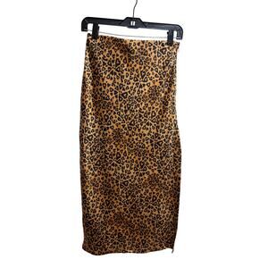 Urban Outfitters Edy Midi Leopard Slip Skirt S Slit Brown Black Satiny Coquette