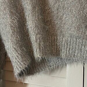 Urban Outfitters Elisabeth sparkly metallic silver sweater. Size XS. Long sleeved, cropped. Fuzzy fabric. Care tag has been removed. Gently worn, in excellent used condition other than the missing care tag. Perfect for the holidays.