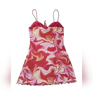 Urban Outfitters Elodie Printed 90s Y2K Red Swirl Mini Dress Small