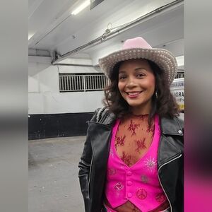 Sparkle and shine in this structured cowboy hat embellished with rhinestones or pearls.