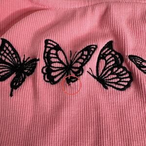 Urban Outfitters Embroidered Butterfly Long Sleeve Cut Out Crop Tee Womens Small