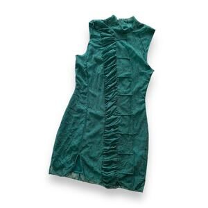 Urban Outfitters Estee Turquoise Ruched Lace Overlay Mini Dress Women's Large