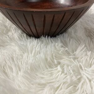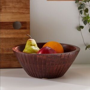 Show off a colorful assortment of fruits and veggies in this etched mango wood bowl, given a deep stain.